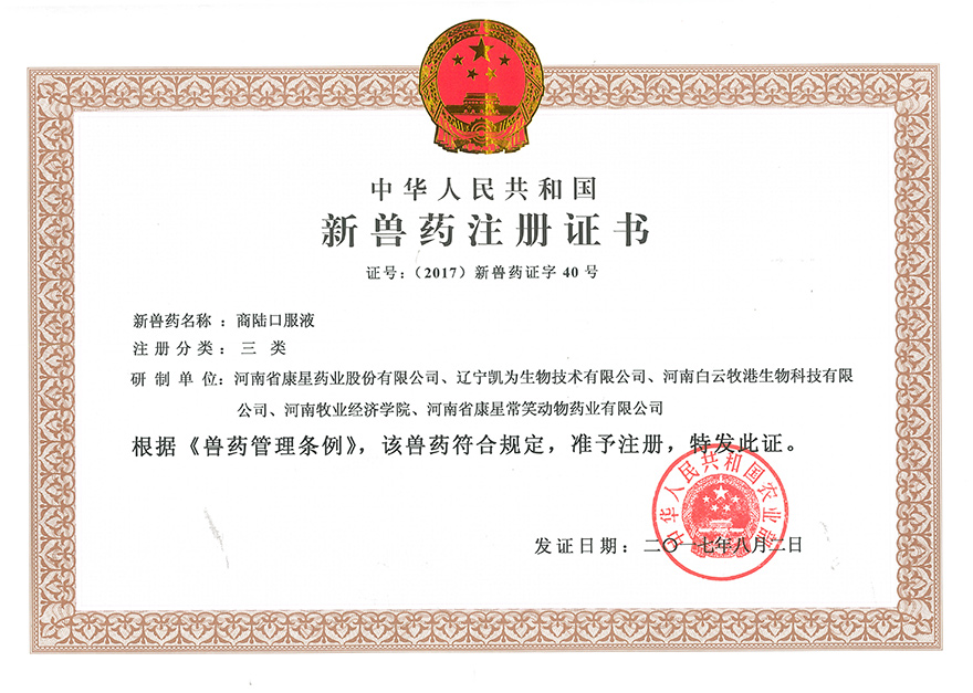 企業(yè)在發(fā)展過(guò)程中,十分重視知識(shí)產(chǎn)權(quán)和科研成果的保護(hù)工作,目前公司共有4項(xiàng)發(fā)明專利,1項(xiàng)國(guó)家三類新獸藥證書(shū)。為表彰我公司在科研工作中做出的突出貢獻(xiàn),錦州市科技局認(rèn)定我公司為2015年錦州市科技創(chuàng)新型中小企業(yè)。
