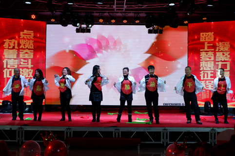 在聯(lián)歡會的現(xiàn)場,華麗舞臺燈光璀璨,背景制作喜氣祥和,一派喜迎新春的美好盛況,那一首首悅耳動聽的歌曲,那一段段優(yōu)美豪放的舞蹈,那一個個風(fēng)趣搞笑的互動小品.......在舞臺上傾情巨獻(xiàn),精彩紛呈,掌聲與喝彩此起彼伏,現(xiàn)場氣氛熱烈、喜氣、祥和,凱為人的魅力與風(fēng)采在這一刻光芒四射,凱為人的才藝在這一刻八仙過海??!